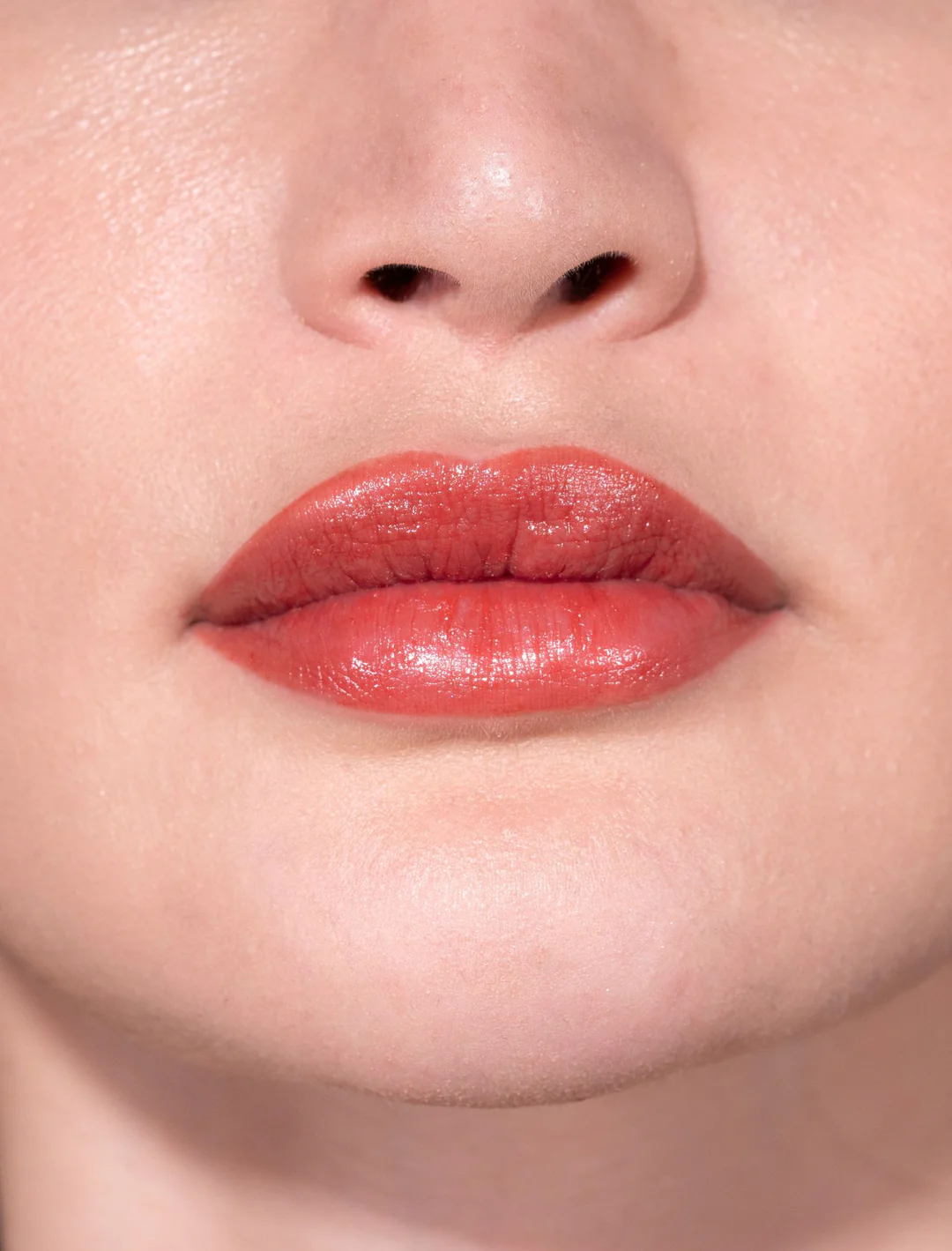 Använd samma nyans på läppar och kinder för ett harmoniskt, balanserat uttryck med naturlig lyster.