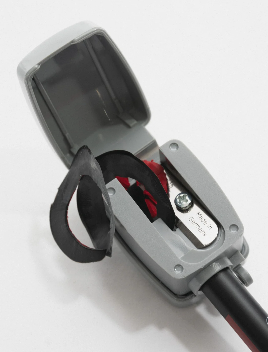 Behållaren fungerar som en uppsamlare för allt spill. Den lilla stickan är framtagen för smidig rengöring av bladen. Det är det enda verktyg du behöver för att rengöra din Sharpe Diem vässare, allt annat kommer att förstöra bladen.